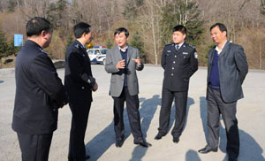 10月26日下午,白山市副市长刘胜君在市政府副秘书长赵洪刚、市公安局副局长兼交警支队长姜云波等领导陪同下,深入道路交通管理工作一线视察“十八大”交通保卫工作。